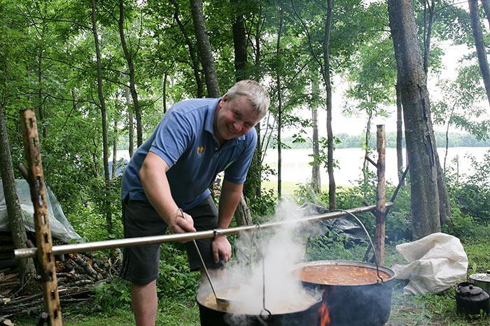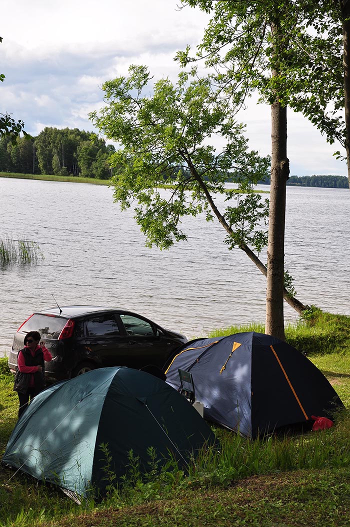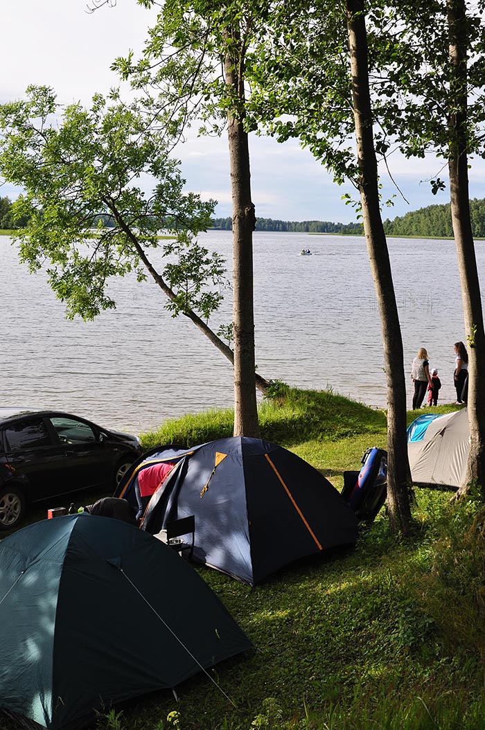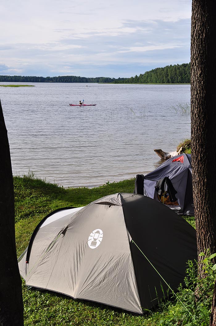 Проживание в палатках. На базе имеется питьевая вода (колодец), электричество, туалеты, места с навесами и столами. Места для костров обеспечены дровами. Можно арендовать котелки, мангалы и палатки, а также лодки, катамаран.