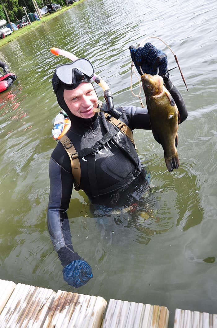Выходя из воды участник сдает ВСЮ добытую рыбу судье.